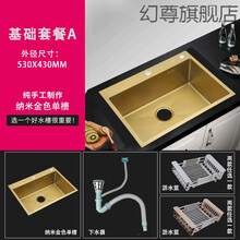 大单槽台中盆洗菜盆单槽台中盆水槽单槽 台中盆金色304不锈钢水槽小号厨房台下洗菜盆大单槽手工家用 金色尺寸53*43基础套餐