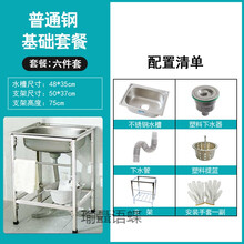 洗菜盆柜组合厨房加厚简易不锈钢水槽单槽双槽带支架水盆洗菜盆洗碗池套餐家用 普通钢48*35支架基础-普通下水