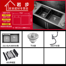 左小右大反方向黑色纳米水槽双槽厨房手工洗菜盆不锈钢家用洗碗池 纳米-【750x420】A标准套餐 【黑色左小右大