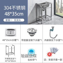 洗菜盆柜组合304款厨房不锈钢水槽单槽洗菜盆简易水池带支架家用洗手盆洗碗槽 304钢48*35套餐一