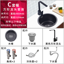 黑色纳米王圆形方形吧台阳台小水槽单槽304不锈钢迷你洗菜盆 纳米圆形*(C套餐)