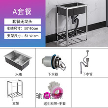 洗菜盆柜组合厨房不锈钢水槽加厚洗菜盆单槽带支架家用水池洗碗槽手工盆洗碗池 5040无龙头套餐