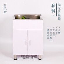 洗菜盆柜组合洗碗槽一体柜不锈钢池304水槽双槽加厚厨房台面洗菜盆柜组合家用 淡白色201钢52*38套餐1无龙头
