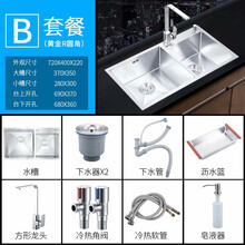 洗菜池双槽手工水槽双槽洗碗池双槽洗菜盆台下盆水槽厨房双槽加厚304不锈钢洗菜盆家用手工洗碗槽水池双盆 72X40(方形龙头)B套餐