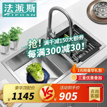 法派斯304不锈钢水槽厨房家用洗菜盆手工加厚双槽拉丝FD609 FD609套餐D 抽拉10件套