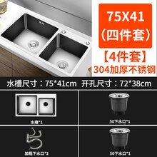 厨房304不锈钢水槽双槽套餐手工加厚洗菜盆家用单洗碗池碗槽水池 手工盆【SUS304】75*41-四件套-A套餐