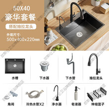 纳米水槽单槽大单槽台中盆淘菜盆单槽台下日本黑色纳米水槽单槽厨房304不锈钢洗菜盆大号洗碗槽水池 三孔-50*40(豪华抽拉套餐) +净水器龙头