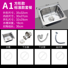 阳台水槽 不锈钢洗手台 阳台洗衣柜304不锈钢水槽单槽加厚洗菜盆厨房洗碗池阳台迷你小号台下洗手盘定制 方形A1-35*32(标准套餐)