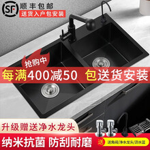 纳米手工水槽大双槽灰黑色厨房304不锈钢加厚洗菜池洗碗槽淘菜盆不沾油套装防刮耐磨抗氧化包安装莱信 A款特惠套餐(裸槽套装) 720*400mm