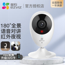 萤石摄像头家用无线wifi监控器 家庭莹石云监控摄像头 室内手机远程监控音频卡片机 【C2C全景-1080P】超清广角版 +16g内存卡(免费升级32G卡)