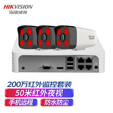海康威视摄像头 监控设备套装 3路带4TB硬盘 200万网络高清摄像头红外50米 POE供电手机监控B12V2-I室内室外
