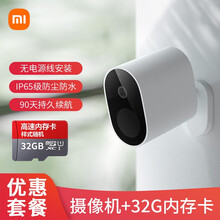 小米(MI)室外摄像机电池版户外长续航免布线摄像头防水防尘红外夜视AI人形侦测室外版广角摄像头 小米室外摄像机+32G内存卡 标配