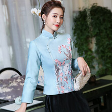 秀观唐青芳冬装2019新款女士唐装夹棉外套保暖中国风改良旗袍上衣 绿色 XL