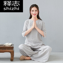 释志 【高品质】禅服佛系女居士服拜佛打坐服禅修服装修女套装春夏棉麻中式上衣禅意瑜伽服中国风唐装复国潮 灰色七分袖套装 XXXL