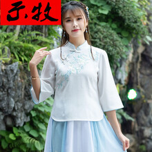 示牧品牌女装学生唐装古装上衣复古改良旗袍两件套民国风女中国风套装汉服茶服 仅1958白色上衣 M