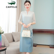 卡帝乐鳄鱼女装品质夏季旗袍2021年新款中国风改良版唐装连衣裙日常民国风复古女装 蓝灰 M