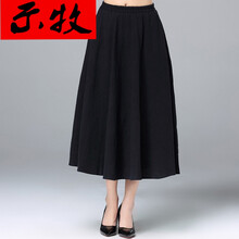 示牧品牌女装棉麻旗袍上衣修身短款复古民族风改良唐装民国风女装茶艺服装汉服 黑色棉麻半身裙 均码