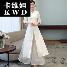 【春夏款茶艺师服装女学生中国风改良汉服】茶服女春夏禅意女装复古禅服中国风汉服改良旗袍上衣中式唐装套装 连衣裙 M