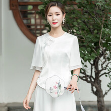 华族经典醋酸旗袍上衣改良日常中式复古手工花扣开襟白色唐装女夏 白色-预售15天 S