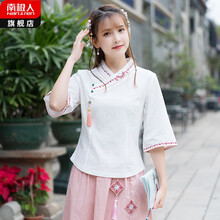南极人轻奢高档品牌汉服女装现代改良版春夏小个子茶服上衣古装旗袍唐装改良版女时尚时尚气质减龄 绿绣花色 M