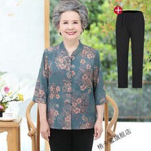 老奶奶夏季唐装短袖60-70岁老人家夏天穿的中老年人春装衬衫衣服妈妈装夏装两件 960绿色上衣+裤子 3XL建议130-140斤