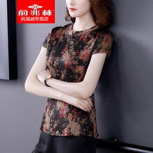 (品质精选)俞兆林新款贵夫人香云纱短袖女装上衣妈妈高端仿真丝旗袍唐装小衫桑蚕丝中国风 黑色L