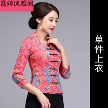 唐装女套装妈妈改良时尚旗袍上衣短款婚宴礼服大码旗袍上衣 单件红上衣 M