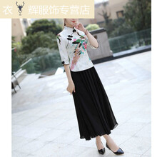 蔻梅中式复古中国风旗袍上衣春夏装改良时尚套装民国女装盘扣唐装汉服f 6010#孔雀白上衣+黑裙子【套装】 XL