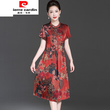 【皮尔卡丹官方店】轻奢品牌女装夏装中年人女妈妈唐装喜服婆婆结婚宴礼服连衣裙旗袍老年夏季古装 红色订婚丈母娘 3XL 125-140斤