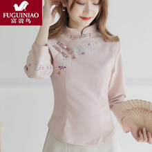 富贵鸟高端品牌 民国复古女改良旗袍套装中国风唐装汉服文艺学生茶艺修身春秋日常 【单件】粉色上衣 S【建议70-93斤】