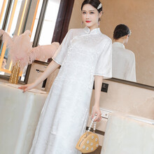 富贵鸟℘品牌直营℘高端气质古风女装改良唐装茶服奥黛夏民族中国风旗袍连衣裙女仙气 白色 连衣裙 S