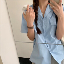 白色短袖衬衫女学生韩版宽松夏季女装新款日系ins衬衣外套女上衣FF24 天蓝色 S