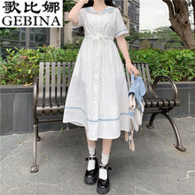 歌比娜 娃娃领连衣裙少女夏装2021新款初中高中学生日系海军学院风长裙子 白色 M