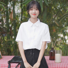 2021夏季新款短袖衬衫女白色少女短袖衬衫女时尚韩版学生宽松polo衬衫上衣女 纯白色 M 建议100-115斤