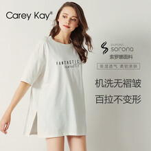 【第二件O元】Carey Kay女士短袖T恤中长款圆领字母印花宽松显瘦休闲百搭打底上衣女装夏季新品 白色 均码