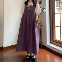 日系两甜美背带连衣裙女学生长裙韩版宽松中长款吊带裙子 {套装}紫色裙+内搭上衣 L