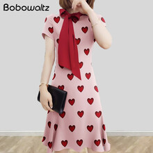 bobowaltz圆领蝴蝶结爱心短袖连衣裙女欧洲站女装2021夏季新款休闲时尚气质潮流通勤裙子女 粉红色 L