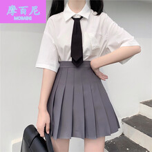 摩百尼青少女初高中学生短袖短裙套装少女夏季2021新款初中高中学生宽松日系连衣裙jk制服靓女胖妹妹毕 单件灰色百褶裙 M