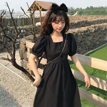 学院风夏季甜美可爱日系连衣裙女学生韩版收腰显瘦中长款a字裙子【4天内发货】 黑色【收藏店铺送小礼物】 L