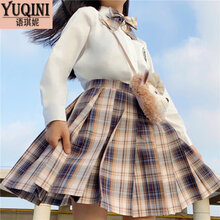 语琪妮春天百褶格子短裙JK制服少女生春装学院风校服日系班服衬衫连衣裙子套装 单件格裙配领结 L