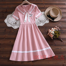连衣裙女学生韩版中长款气质高中生初中生超仙大童日系学院风莲衣裙少女夏装新款小清新甜美长裙子女生女孩子 粉红色 L