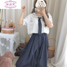 初中生高中生女生女学生少女装海军领学院风连衣裙少女夏装2020年新款初中学生日系可爱套装裙子 衬衫(送领带胸针)+半身裙两件套 L