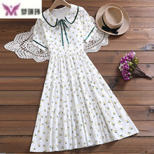 梦琪玮小清新连衣裙少女夏装2021新款初中高中学生日系甜美碎花中长裙子 白色 L