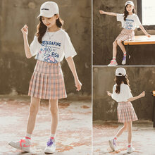 连衣裙女学生韩版中长款气质高中生初中生超仙少女两件套套装14小学生15日系12女大童夏装裙子 白T+短裙 160CM