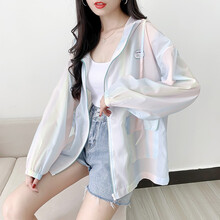 快乐嘉人冰丝渐变色日系防晒衣外套女夏季薄款连帽小清新防晒衫百搭宽松学生 图色 M