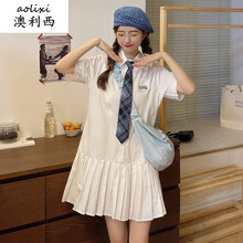 澳利西衬衫领连衣裙少女夏装2021新款初中高中学生学院风日系JK制服裙子 白色配领带 S
