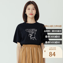 ZET des ZET 女装 夏季圆领上衣女宽松日系印花纯棉短袖t恤 TM20B206-1 黑色 M
