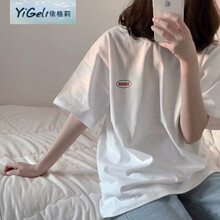 依格莉女生短袖t恤夏装韩版学生衣服少女高中生初中生夏款新款ins潮原宿风宽松中长款百搭半袖T恤上衣 白色 L