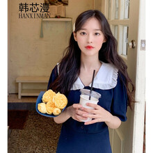 韩芯漫新款学院风女生裙子夏季连衣裙学生韩版显瘦洋气甜美长款裙夏天少女高中初中生女装长裙子女学生 深蓝 S