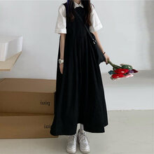 肆缄 黑色长款连衣裙少女脚踝2021新款初中高中学生日系夏季长裙JK套装 21290-衬衣+黑色连衣裙【两】 L
